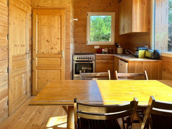 L’accueil propose également une pièce de vie (cuisine, salle de bain, toilettes sèches), une petite mezzanine ainsi qu’un dortoir d’une dizaine de places. Les extérieurs sont arborés et ombragés, sans vis-à-vis, avec trois à cinq places de parking.